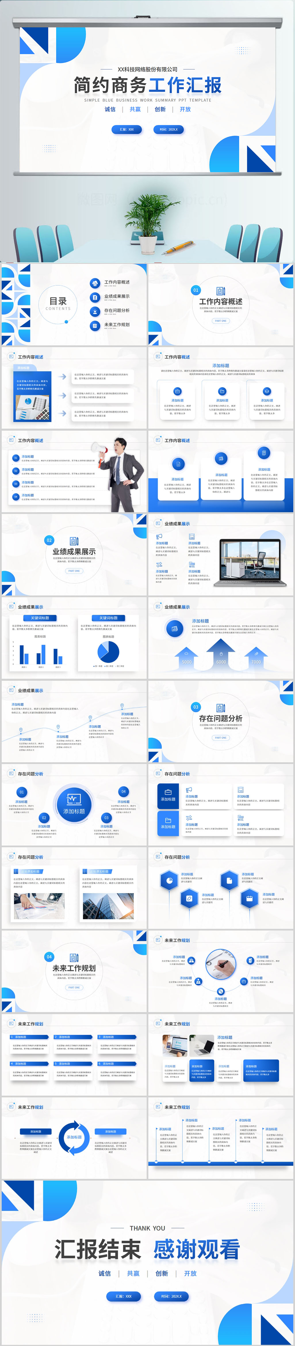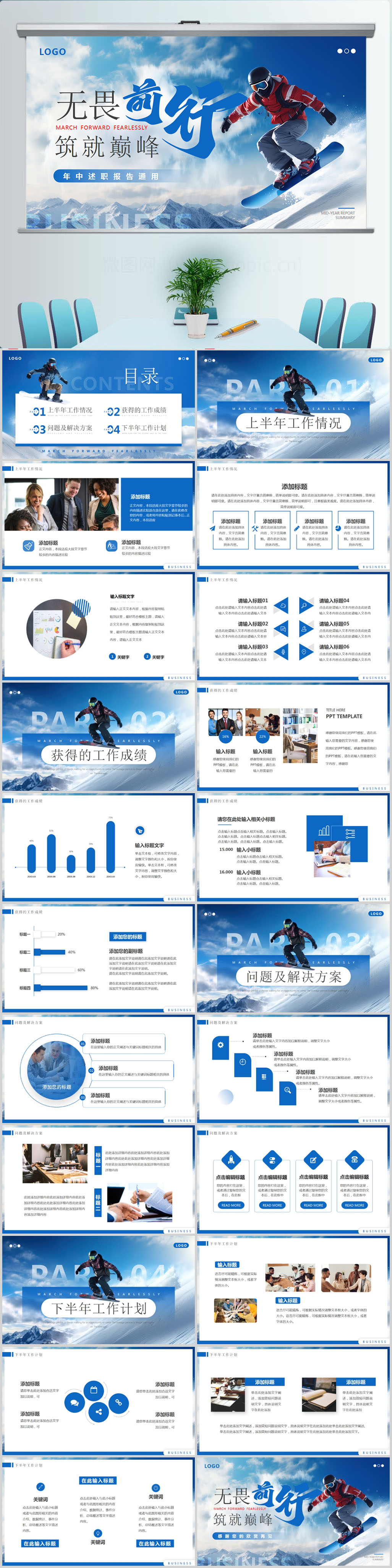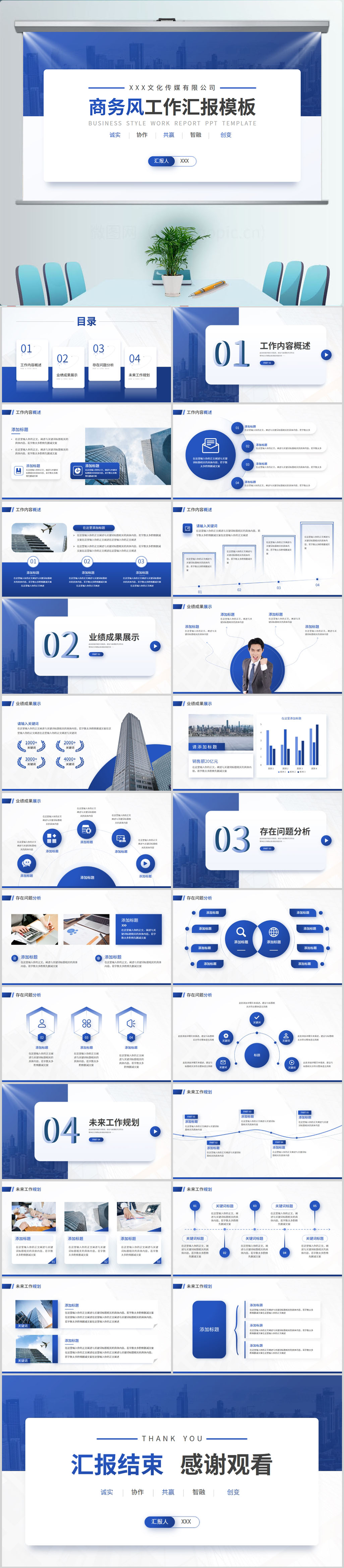 蓝色简约商务年中工作总结工作汇报述职报告ppt模板设计