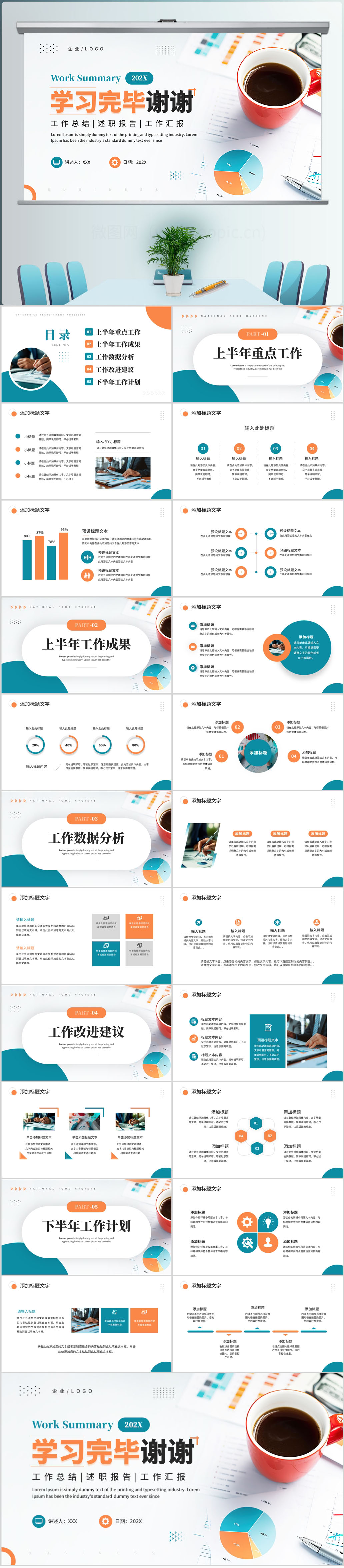 简约商务年中工作总结工作汇报述职ppt模板设计