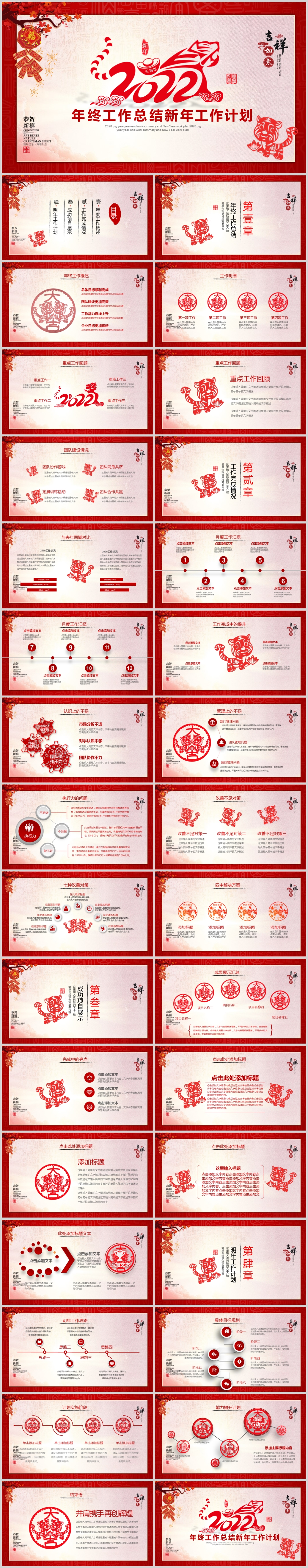 喜庆中国年2022年终总结工作计划PPT模版