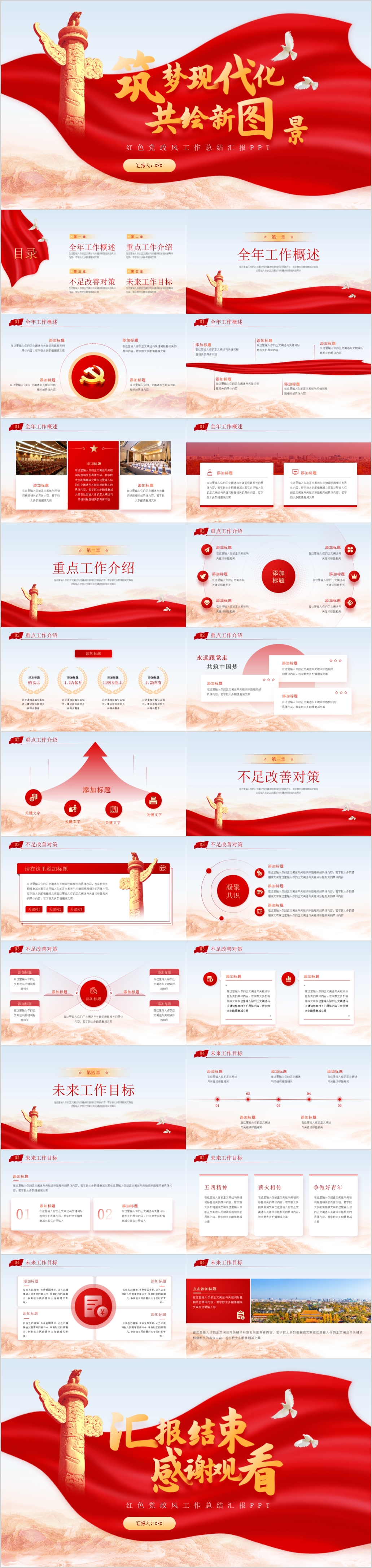 简约筑梦现代化共绘新图景党建工作总结工作汇报PPT模板