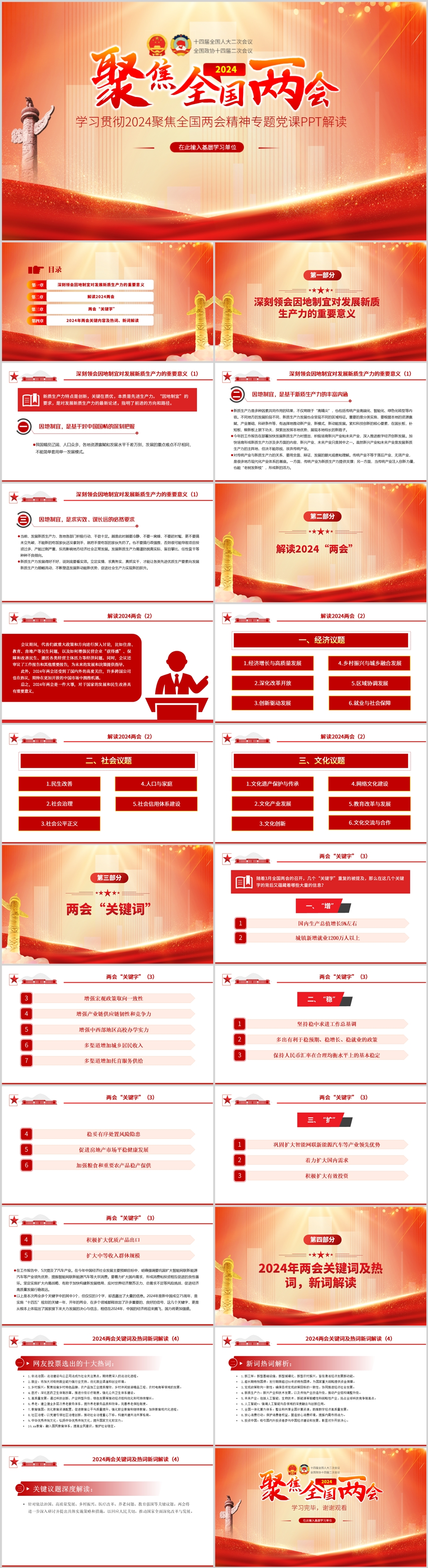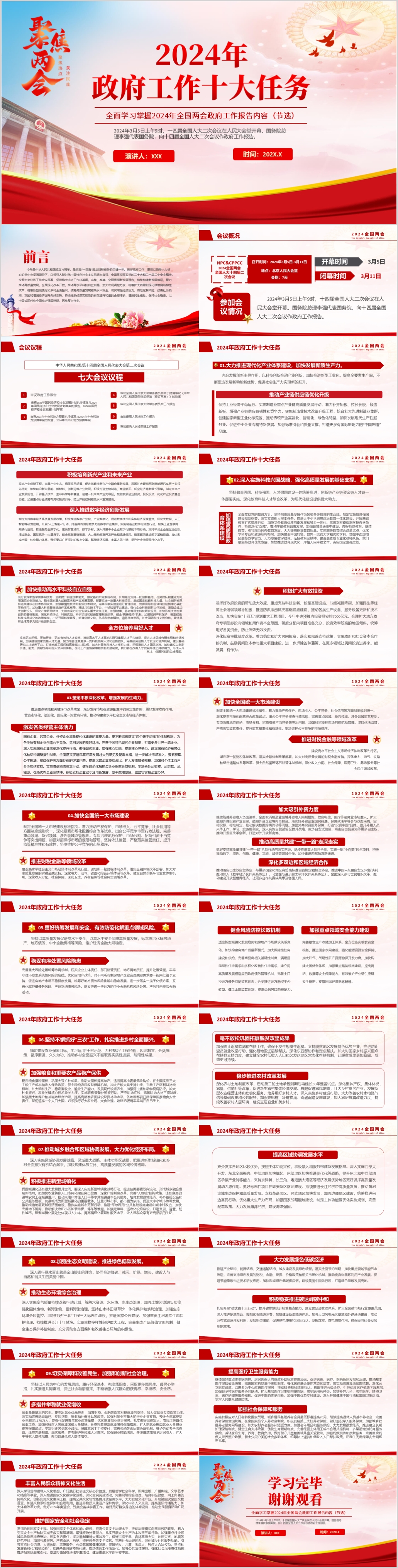 2024两会通用50个场景看政府工作报告全文解读党课ppt模板(内含WORD演讲稿)
