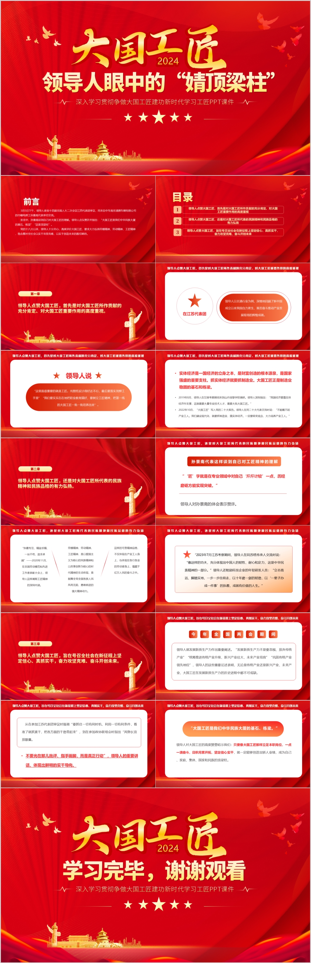 红色2024大国工匠领导眼中的“顶梁柱”专题党课PPT模板