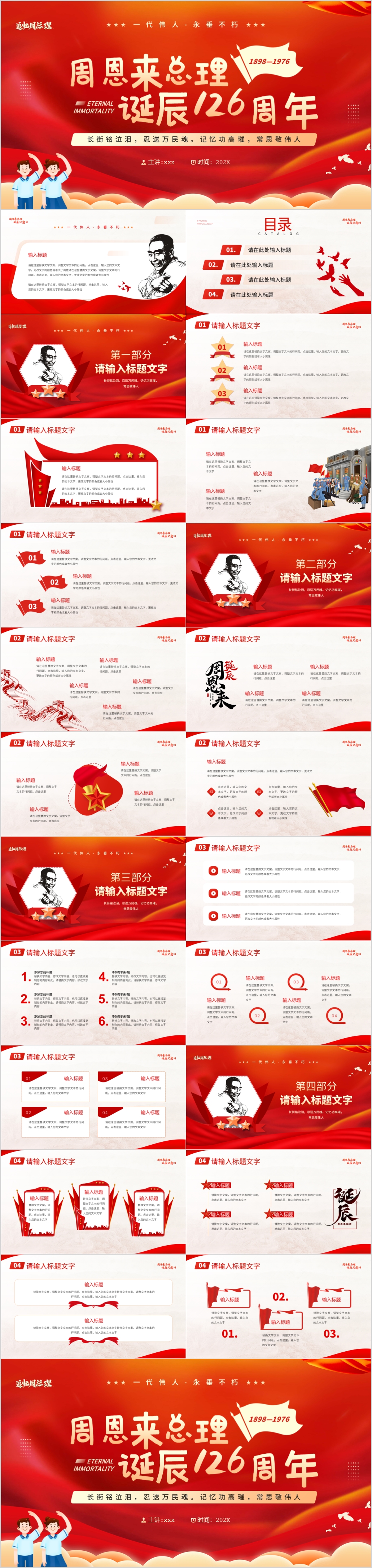 红色大气纪念周同志诞辰126周年介绍ppt模板