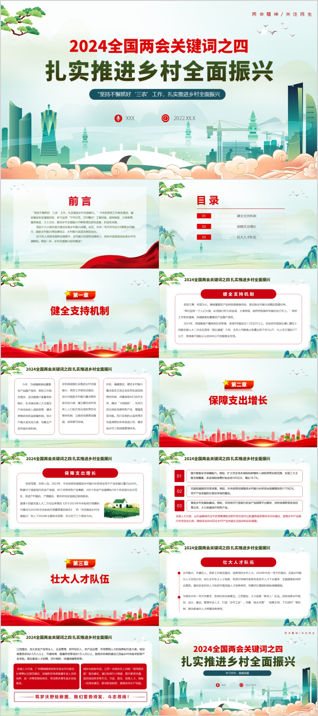 2024两会关键词之四扎实推进乡村全面振兴两会精神ppt模板(内含WORD演讲稿)