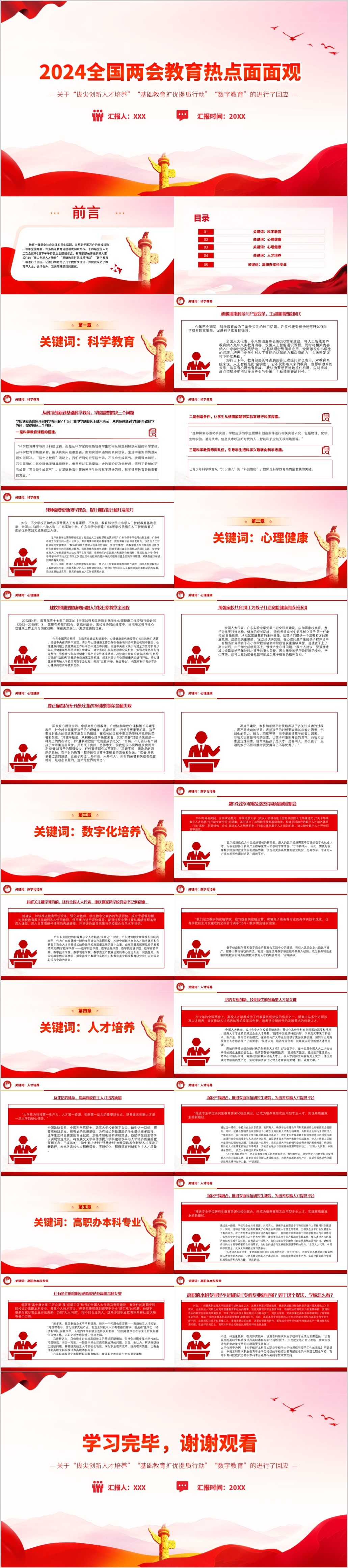 2024全国两会教育热点面面观两会精神解读ppt模板(内含WORD演讲稿)