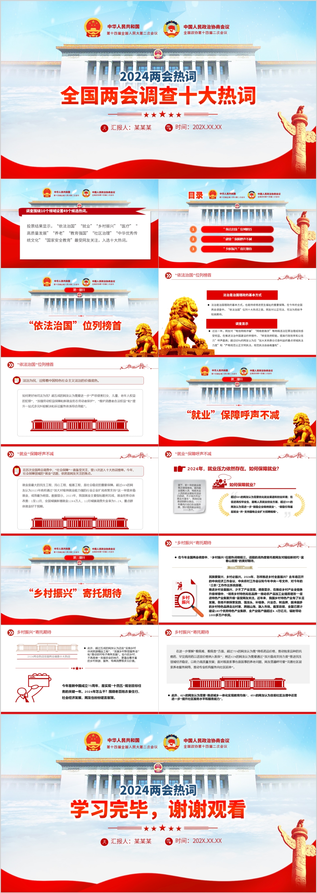 2024全国两会十大热词解读ppt模板(内含WORD演讲稿)