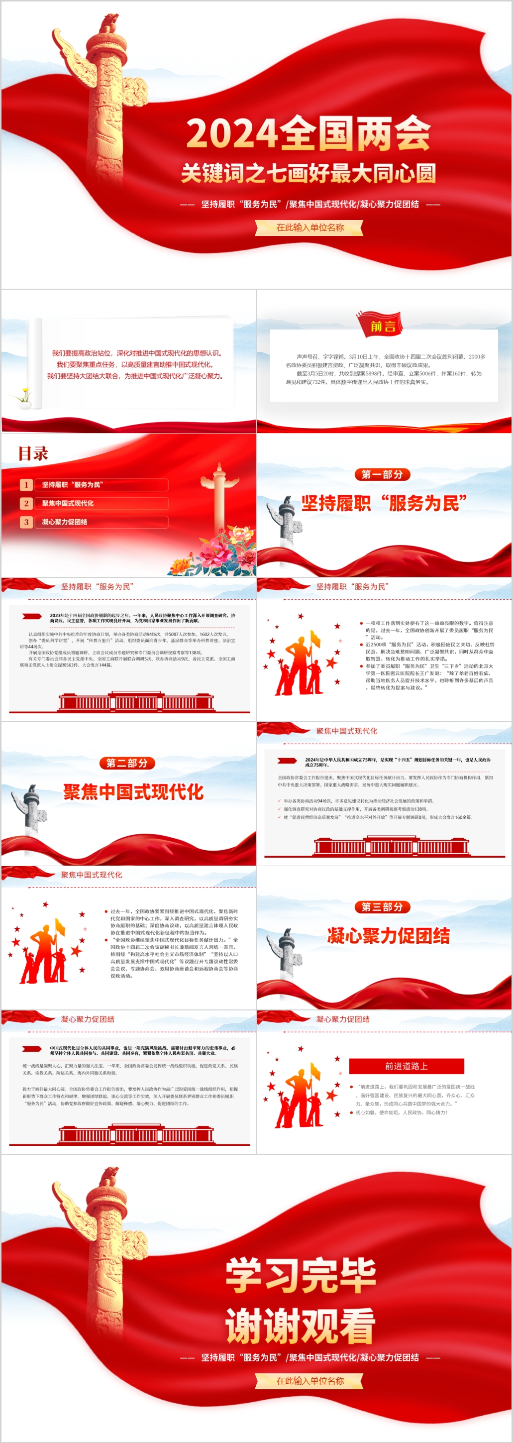 2024全国两会关键词之七画好最大同心圆微党课下载ppt模板(内含WORD演讲稿)