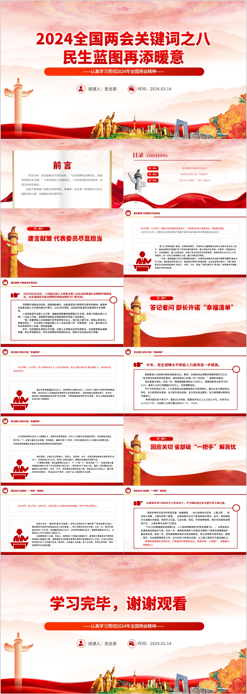 2024全国两会精神两会关键词之八民生蓝图再添暖意党课ppt模板(内含WORD演讲稿