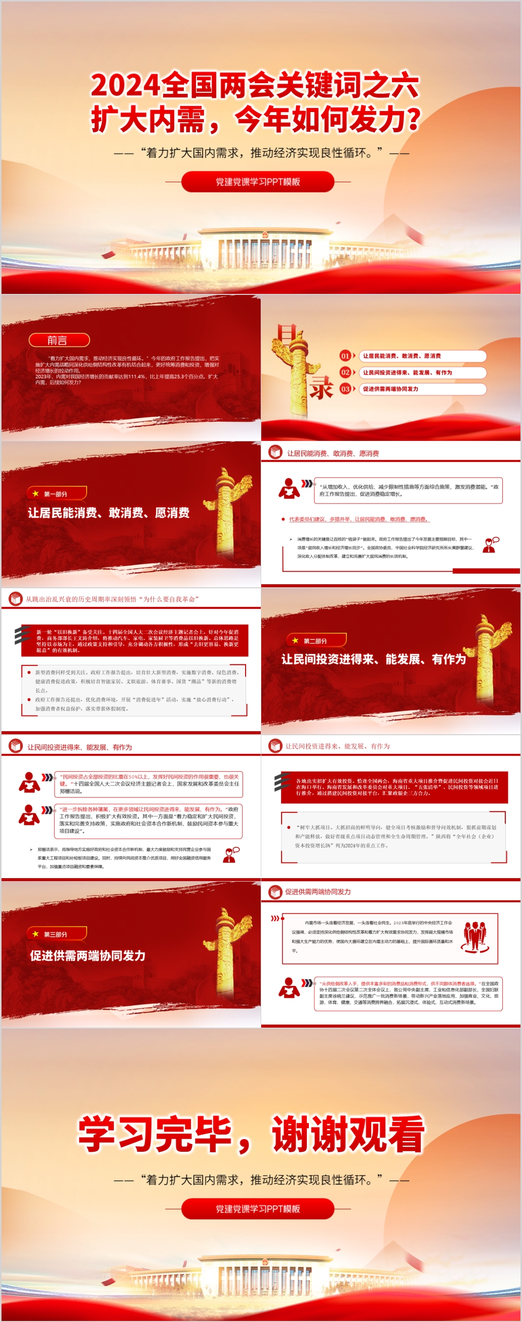 2024全国两会精神关键词之六扩大内需今年如何发力解读党课ppt模板(内含WORD演