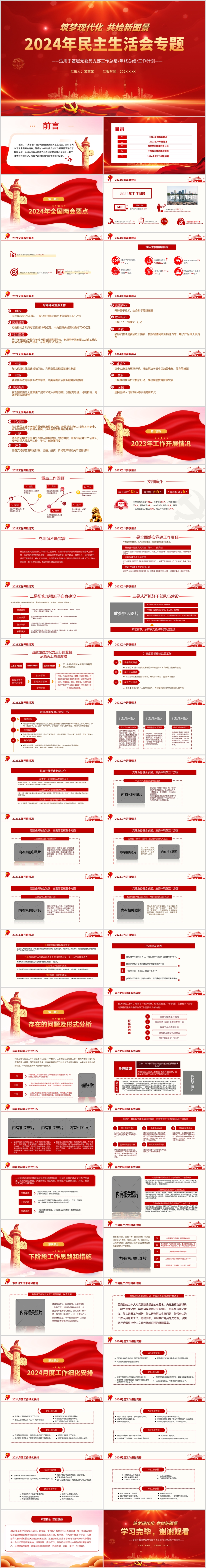 2024年红色党政风民主生活会党建工作总结汇报ppt模板
