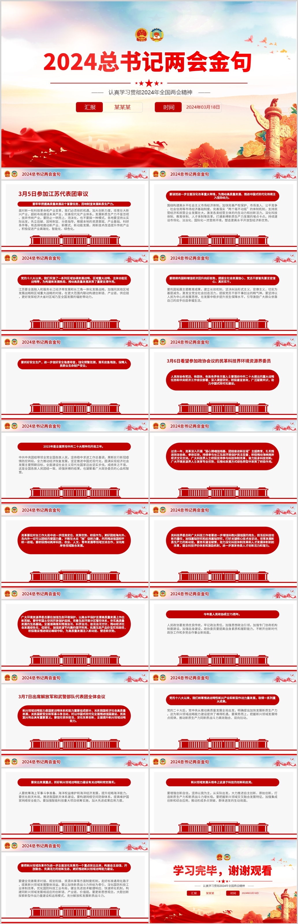 2024全国两会精神金句合集解读党课PPT模板(内含WORD演讲稿)
