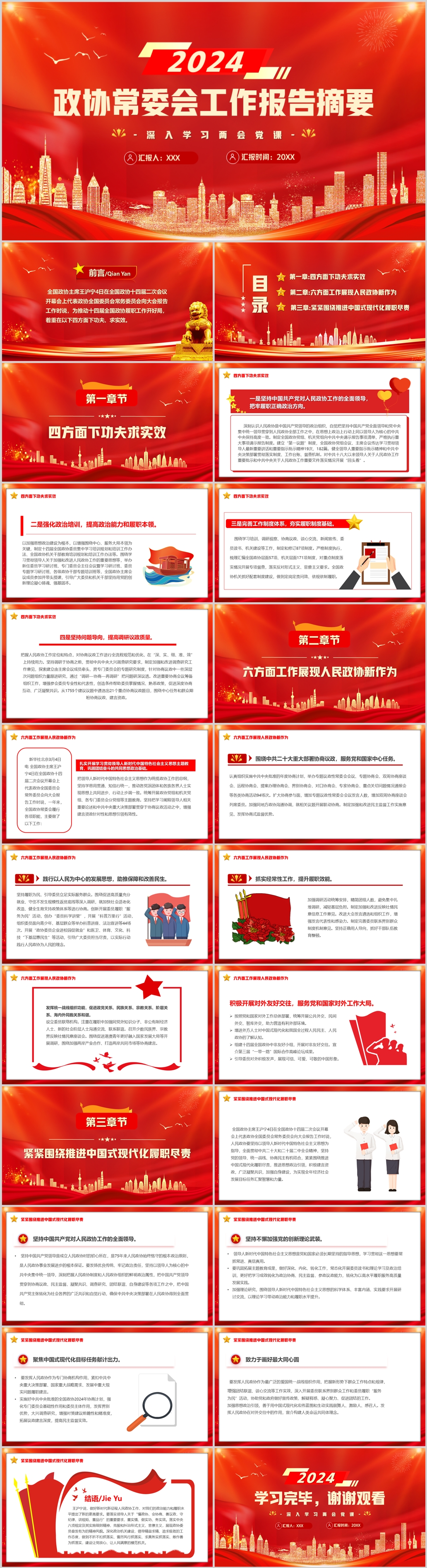 红色2024年全国两会精神政协常委会工作报告摘要ppt模板