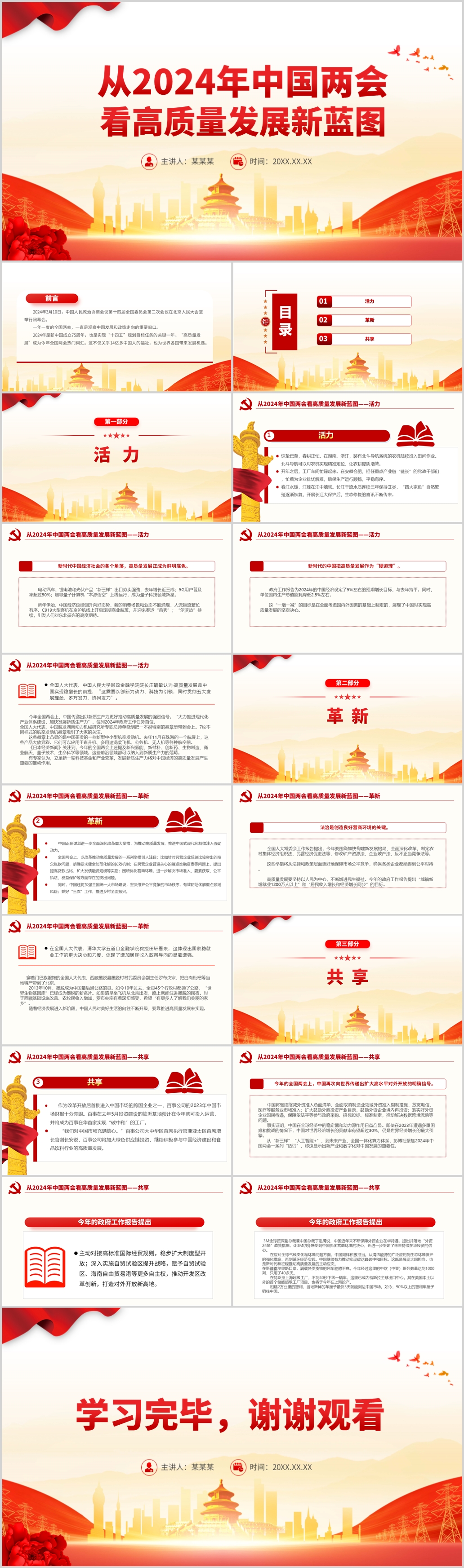 2024两会精神看中国高质量发展新蓝图专题微党课ppt模板(内含WORD演讲稿)