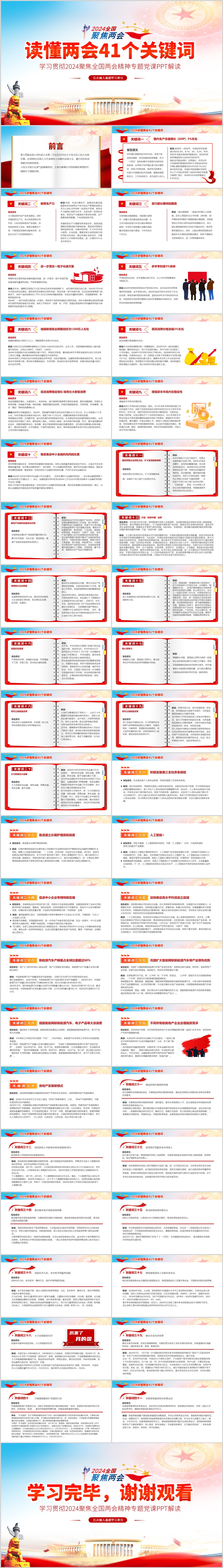 学习2024全国两会精神读懂41个关键词解读ppt模板