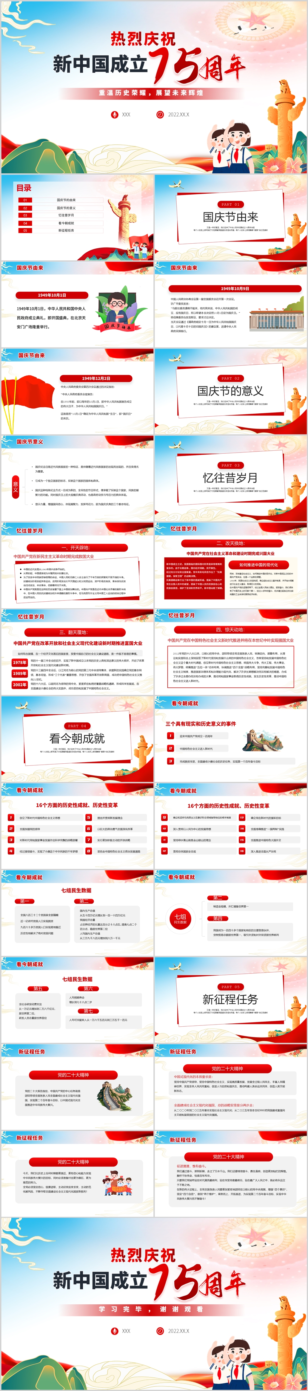 2024年热烈庆祝新中国成立75周年党课ppt模板