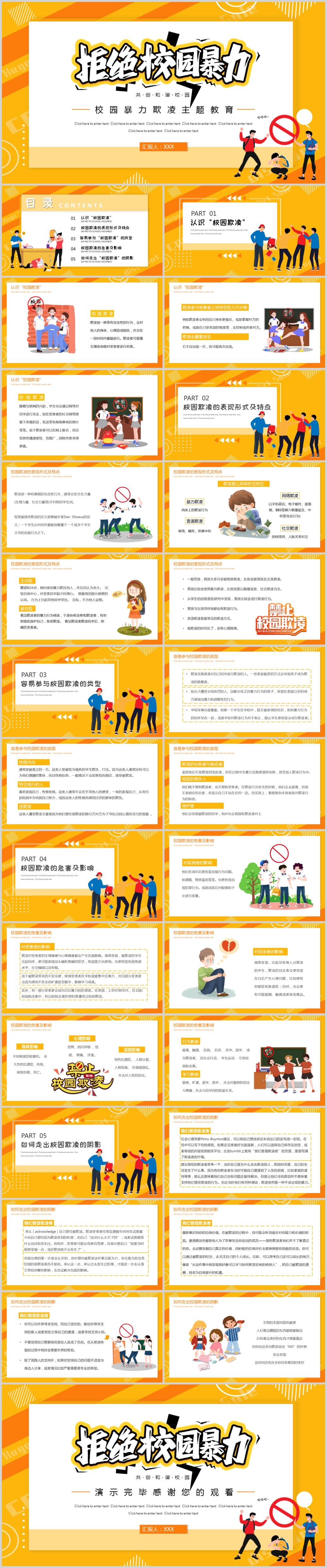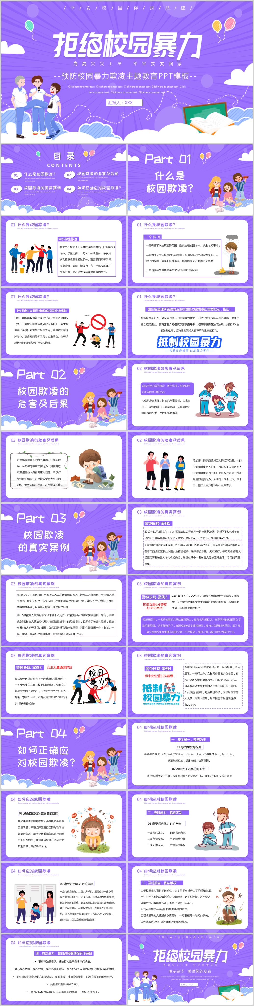 反对校园欺凌小报校园暴力主题班会PPT模板