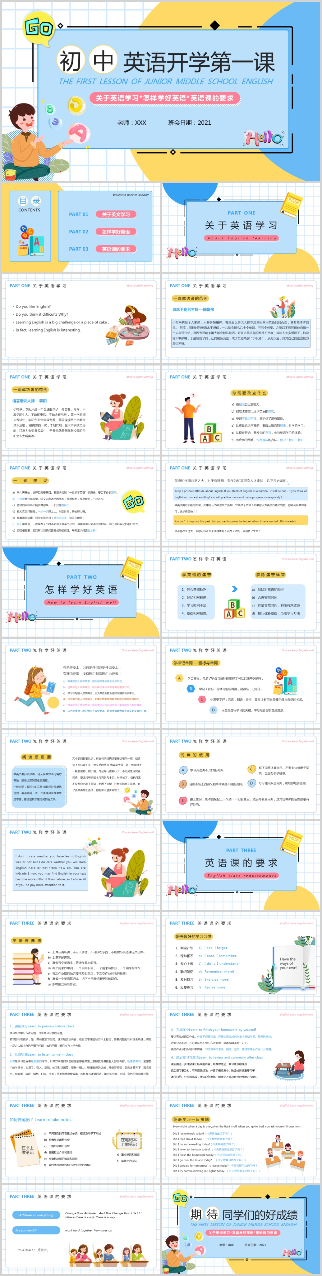 可爱卡通幼儿园中小学生新学期家长会ppt模板