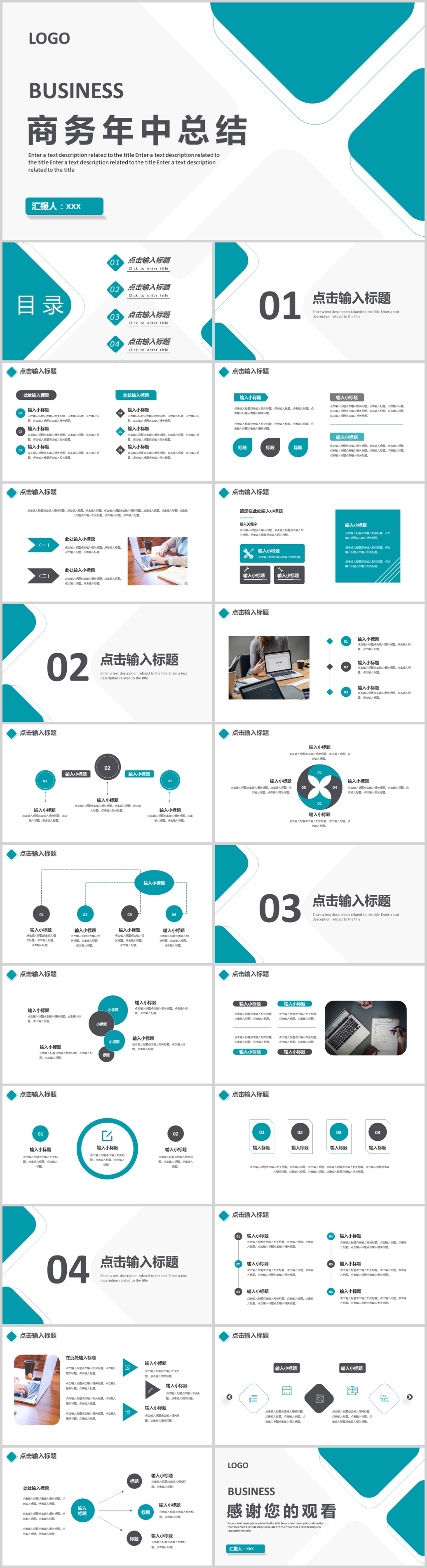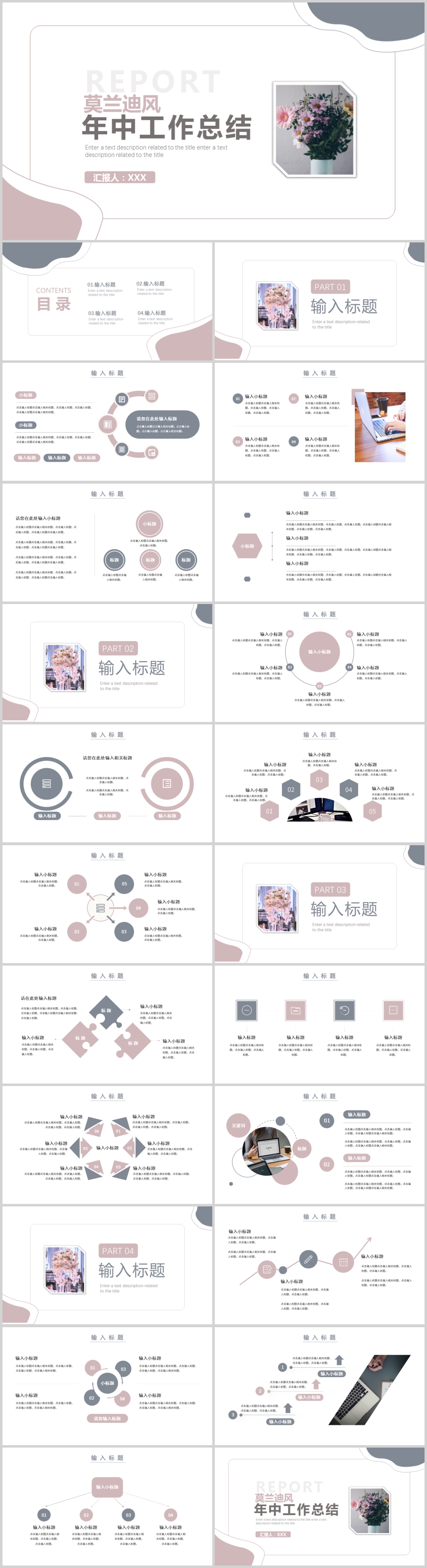 简约几何风商务年中工作总结工作汇报述职报告PPT模版
