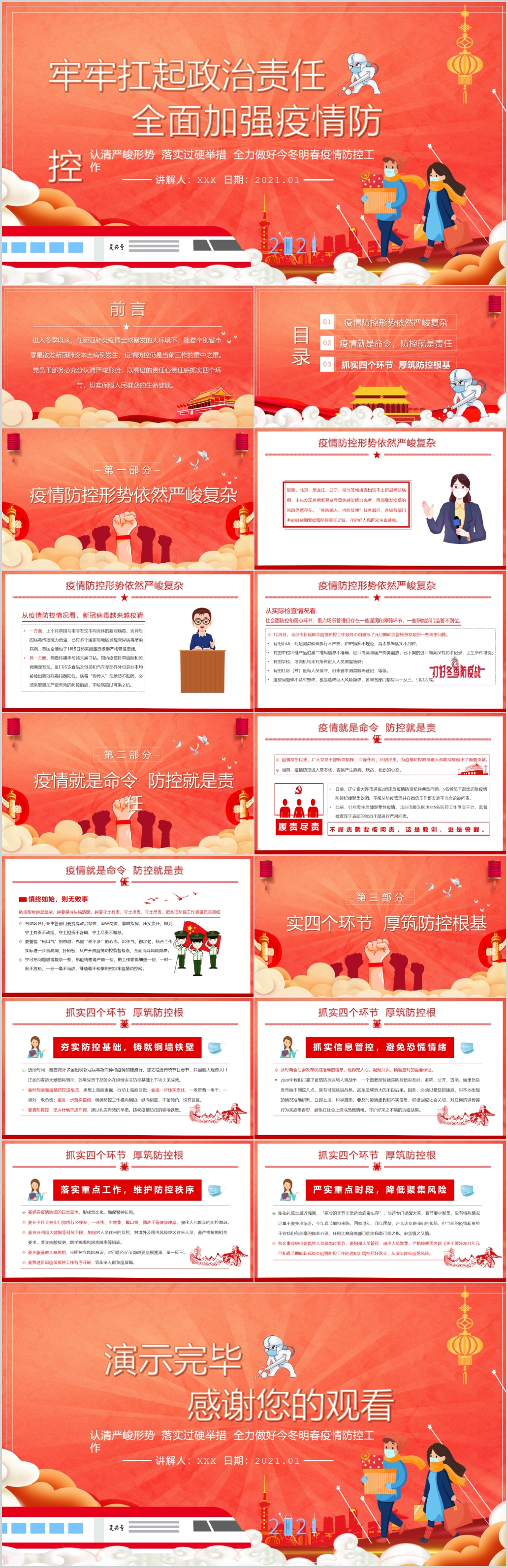 牢牢扛起政治责任全面加强疫情防控PPT模板(内含WORD演讲稿)