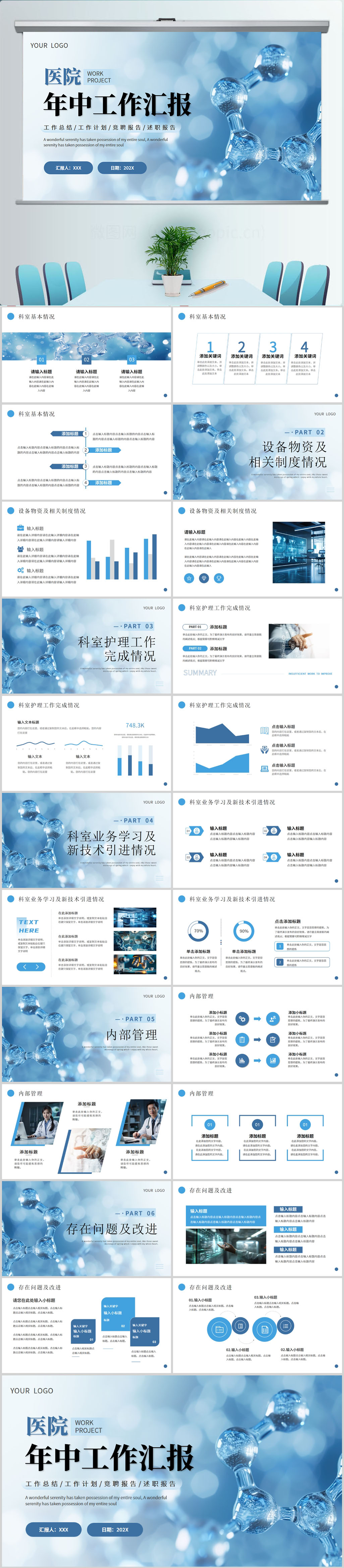 蓝色简约医院年中工作汇报PPT模版设计