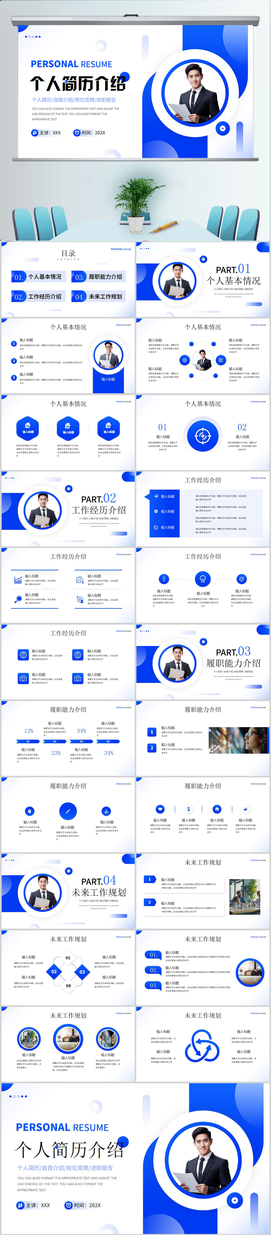 蓝色岗位竞聘述职报告个人简历ppt模板素材