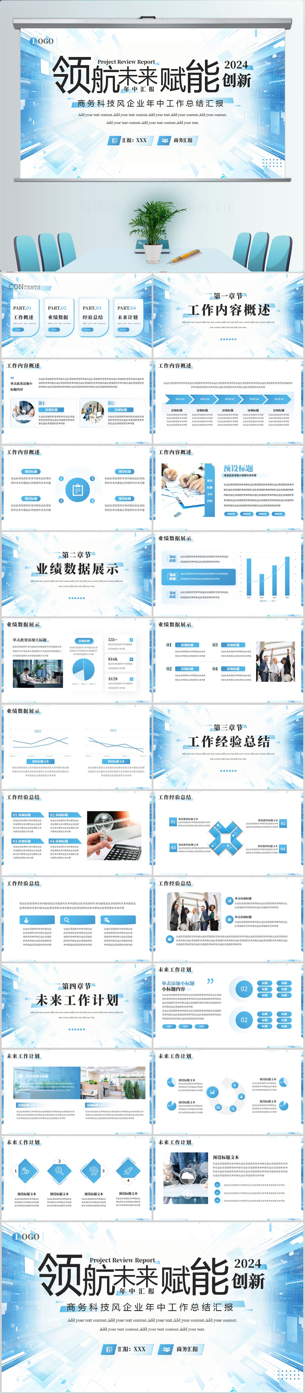 2024蓝色季度工作总结汇报通用ppt模板
