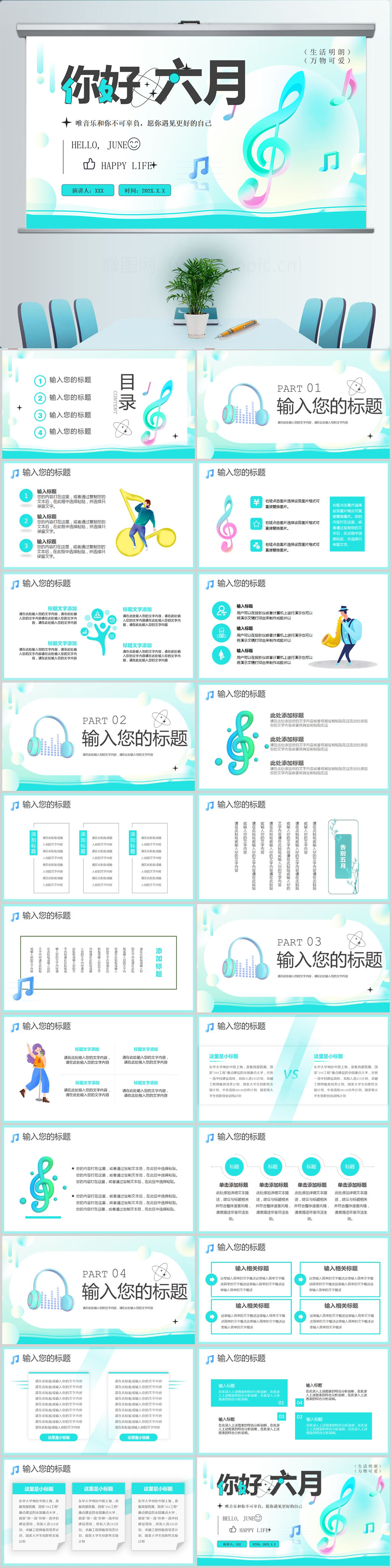 小清新六月你好工作总结ppt模板设计
