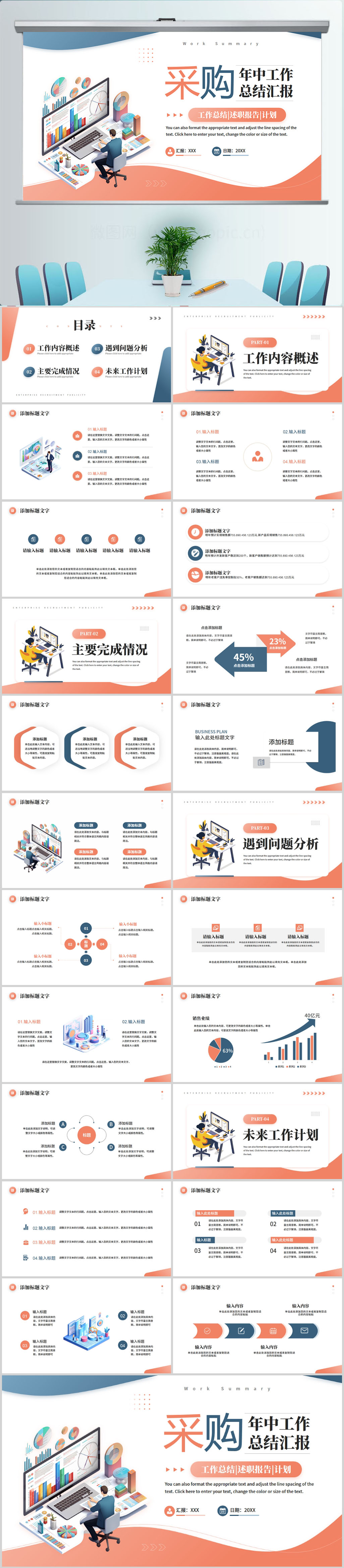 简约采购部门工作汇报总结PPT模板设计