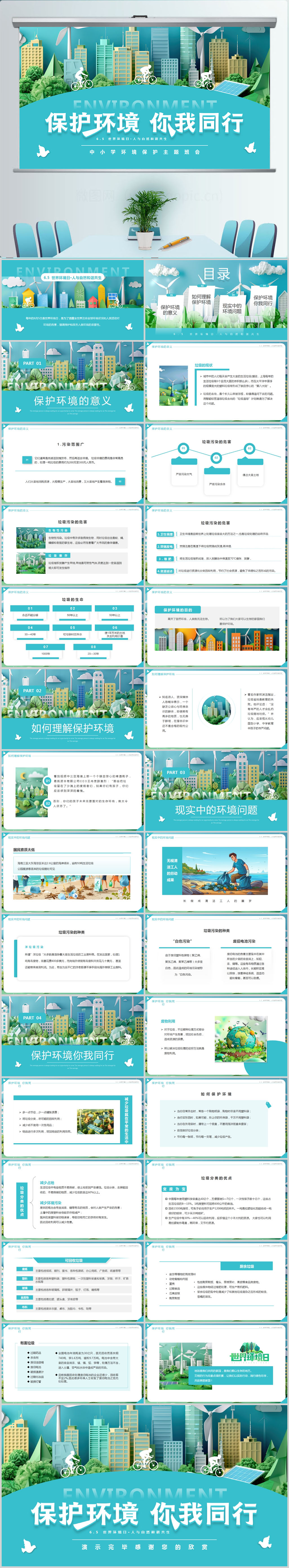 6.5日世界环境日保护环境你我同行主题班会PPT模版设计