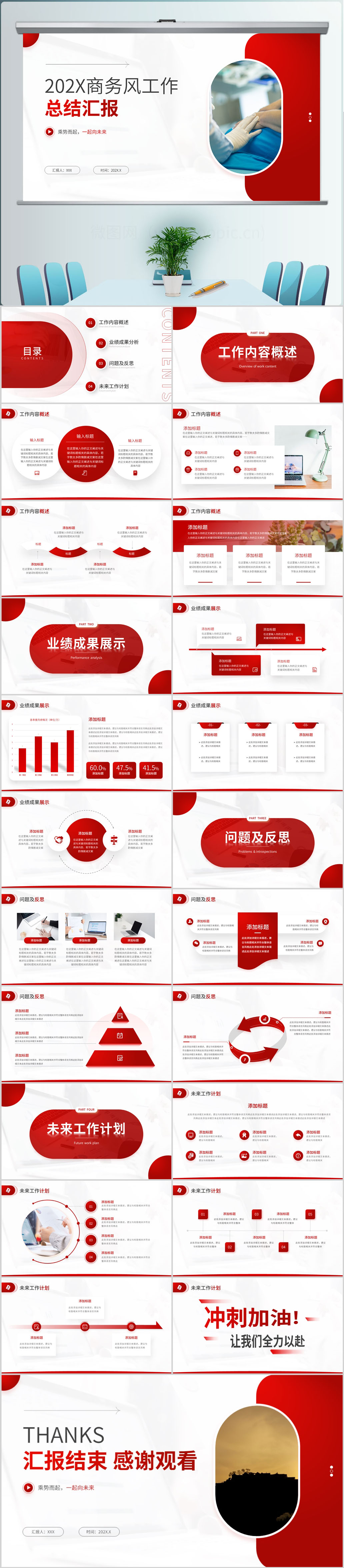 红色商务通用工作总结汇报计划ppt模板