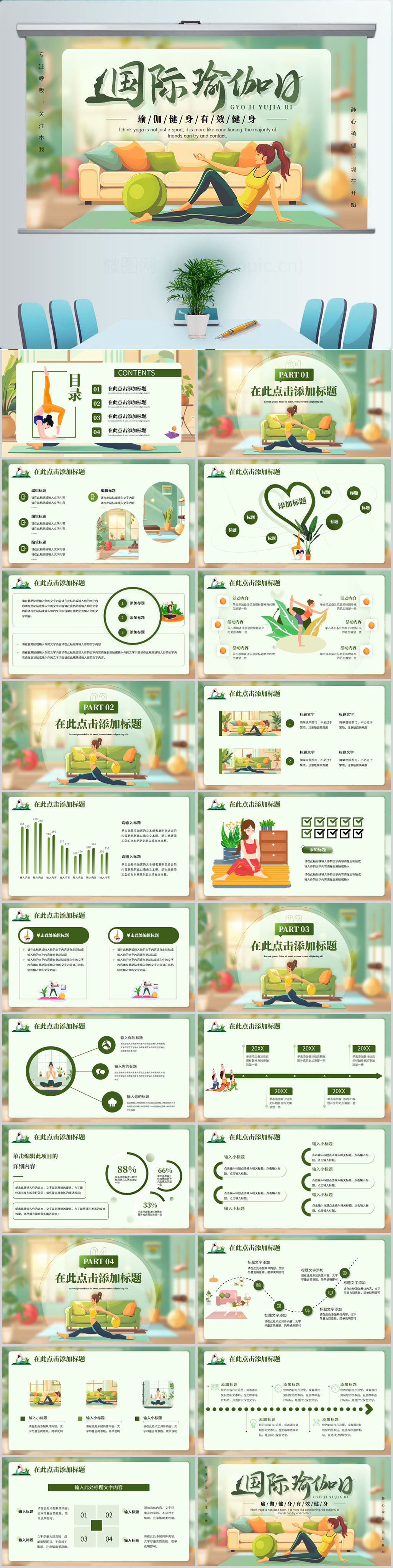 插画风国际瑜伽日PPT模板设计