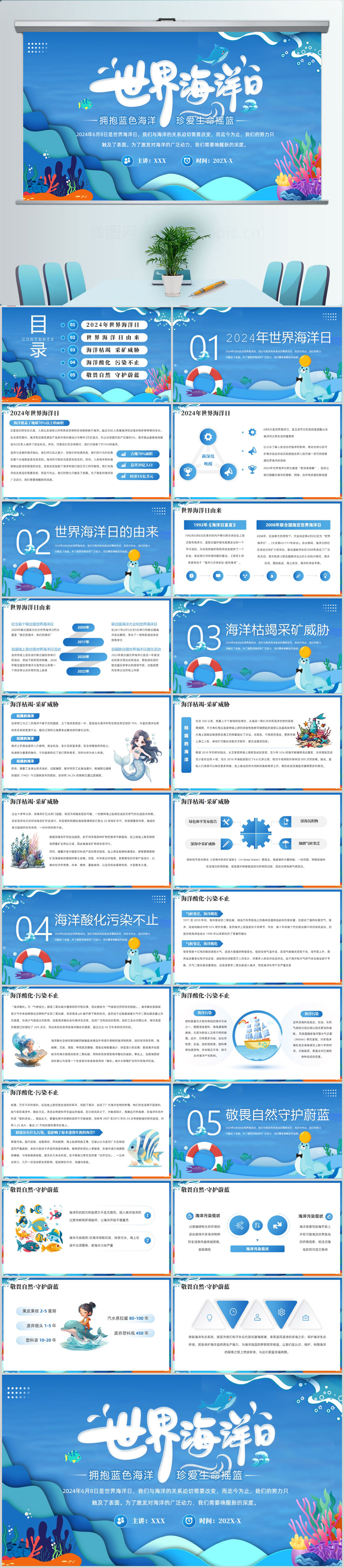 6·8日世界海洋日主题宣传PPT模板设计