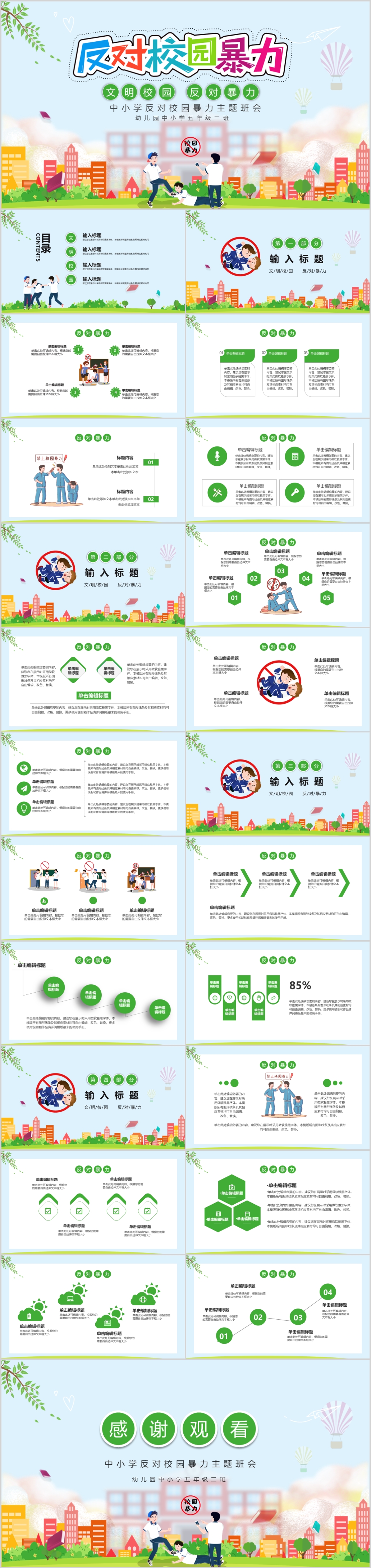 校园文明拒绝校园欺凌反对校园暴力主题班会PPT模板