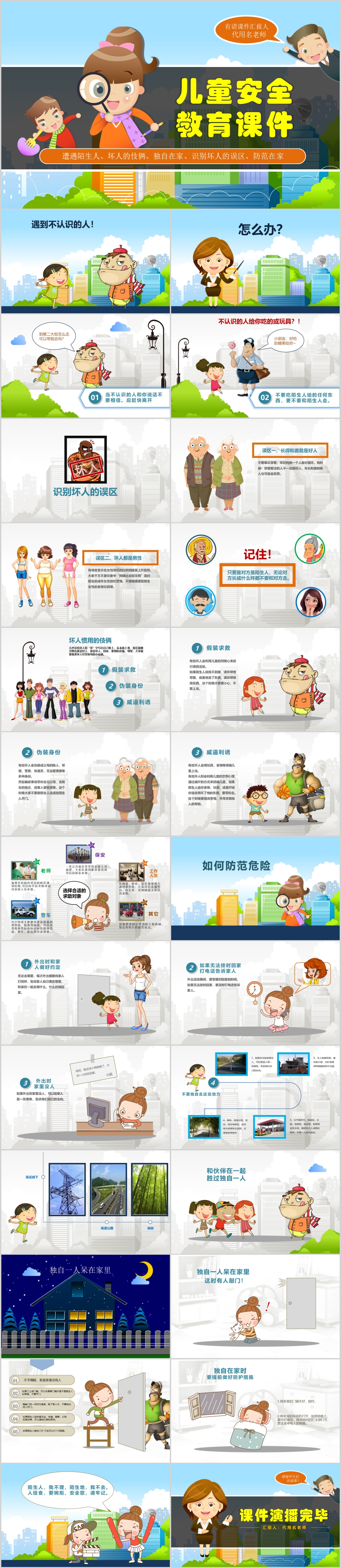 儿童安全防拐骗校园安全教育班会主题课件PPT模板