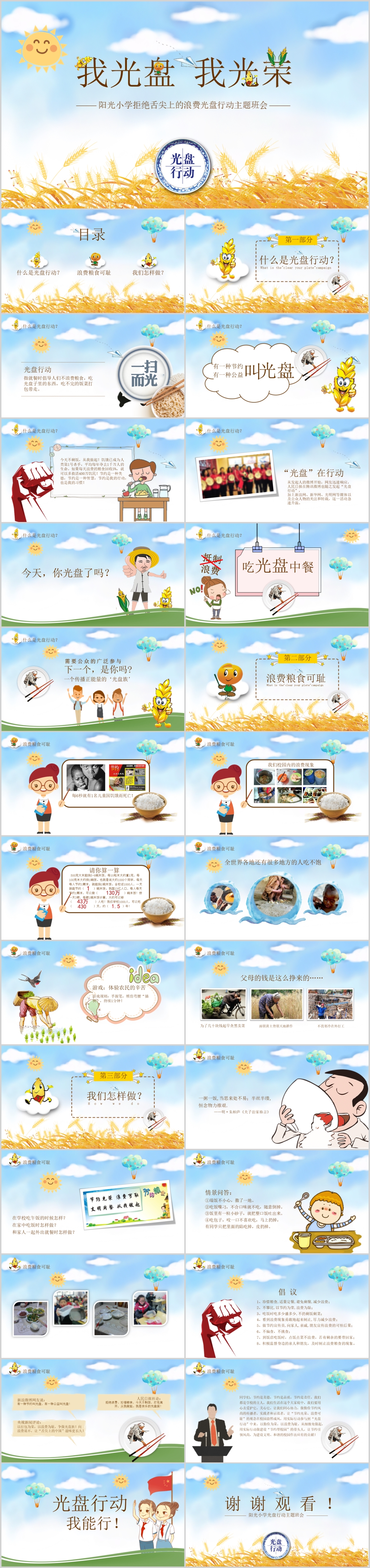 节约珍惜粮食制止浪费光盘行动餐饮我光盘我光荣班会主题PPT模板