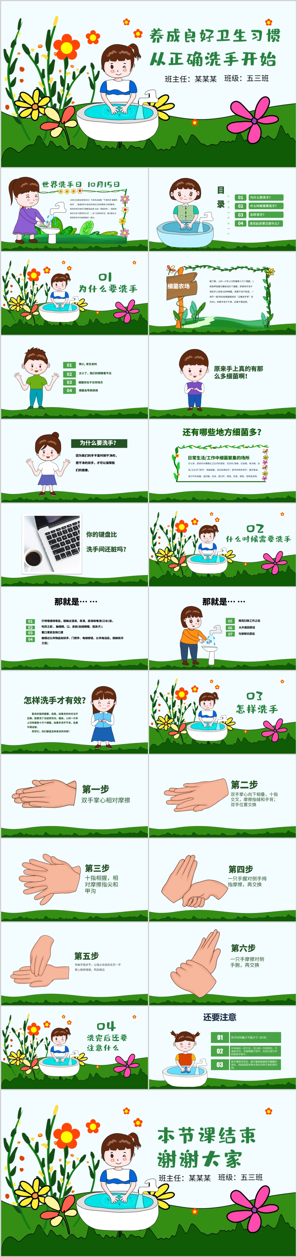 儿童教育中小学生幼儿园讲卫生爱文明从正确洗手做起班会主题PPT模板
