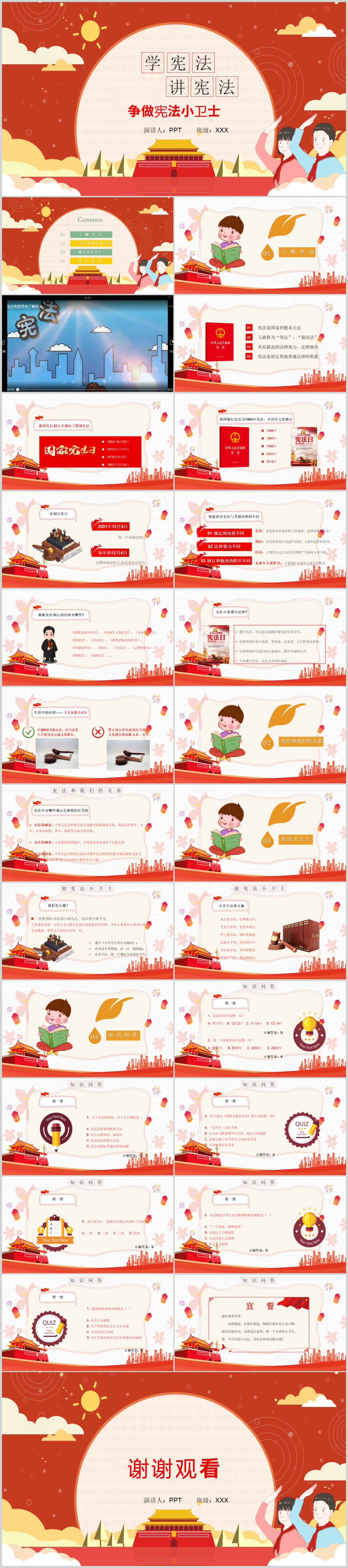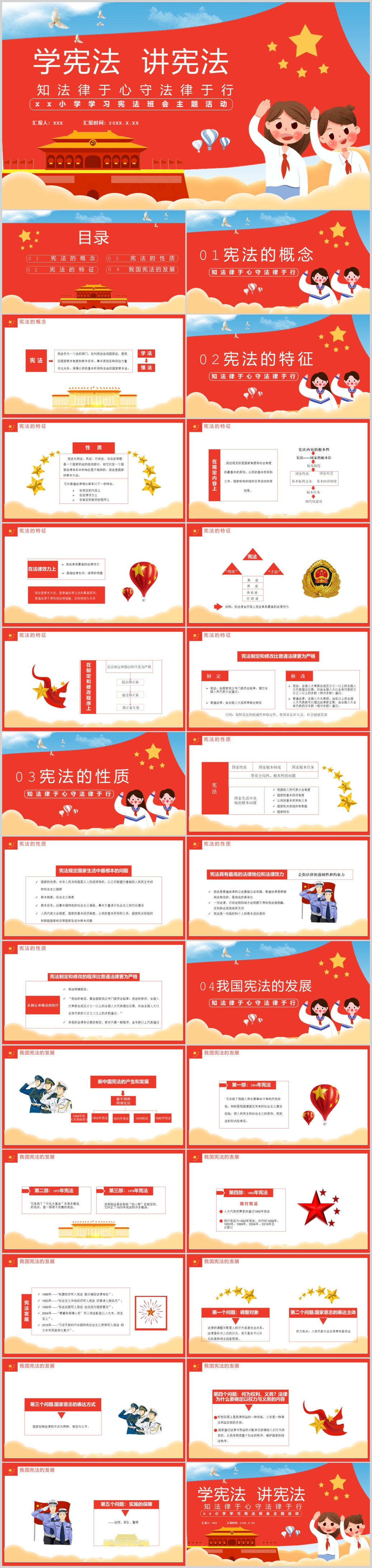 学校中小学生法治教育普法国家宪法日安全法律宪法主题班会课件PPT模板