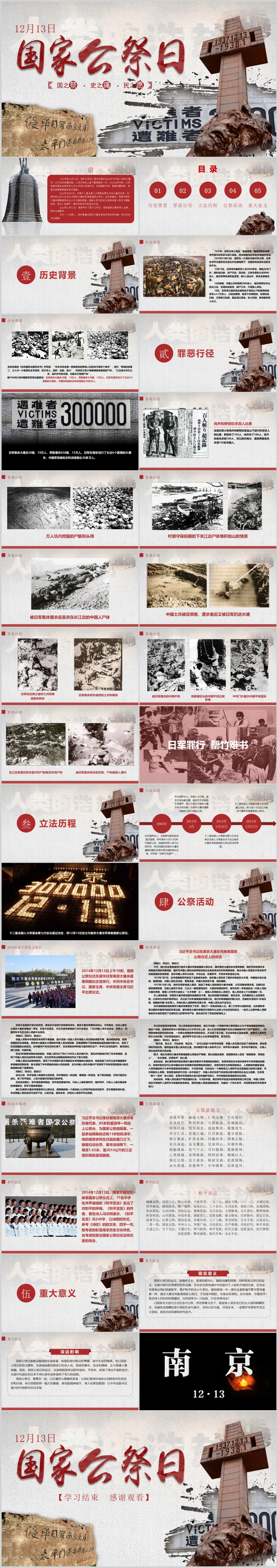 2020国家公祭日南京大屠杀爱国教育主题班会党课PPT模板