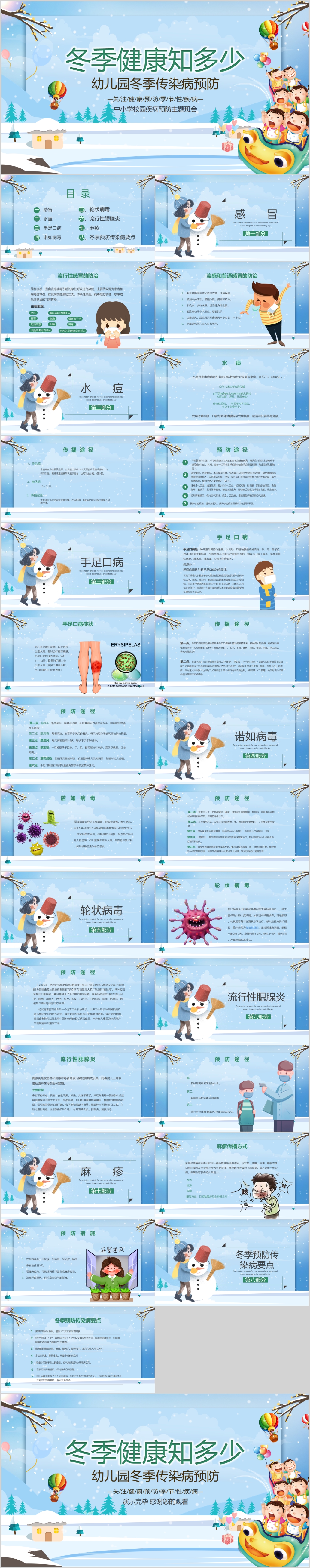 儿童预防冬季传染疾病科普知识班会主题课件PPT模板