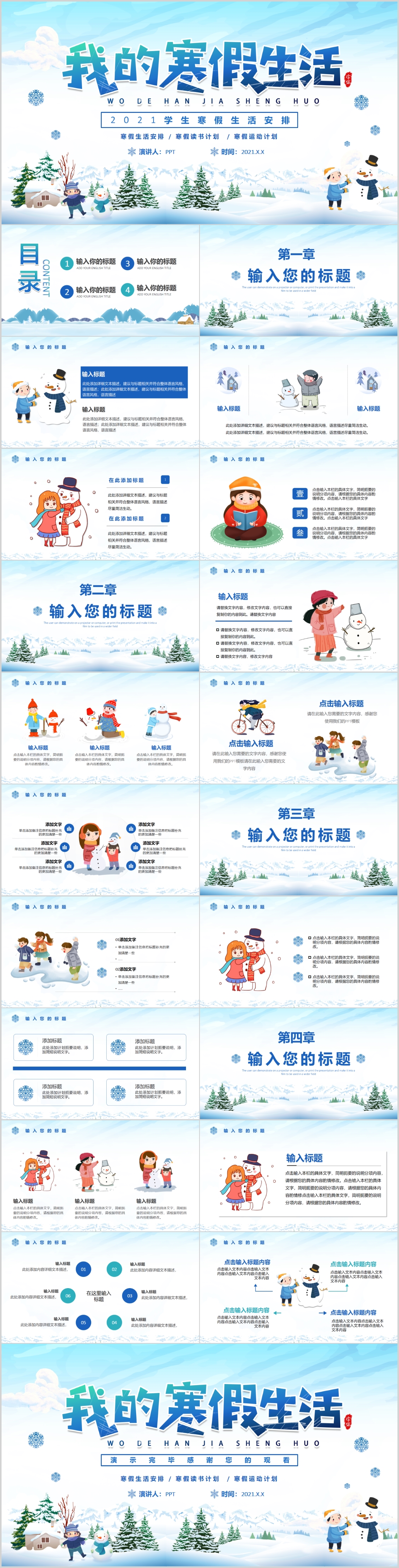 我的寒假生活ppt卡通学生假期展示