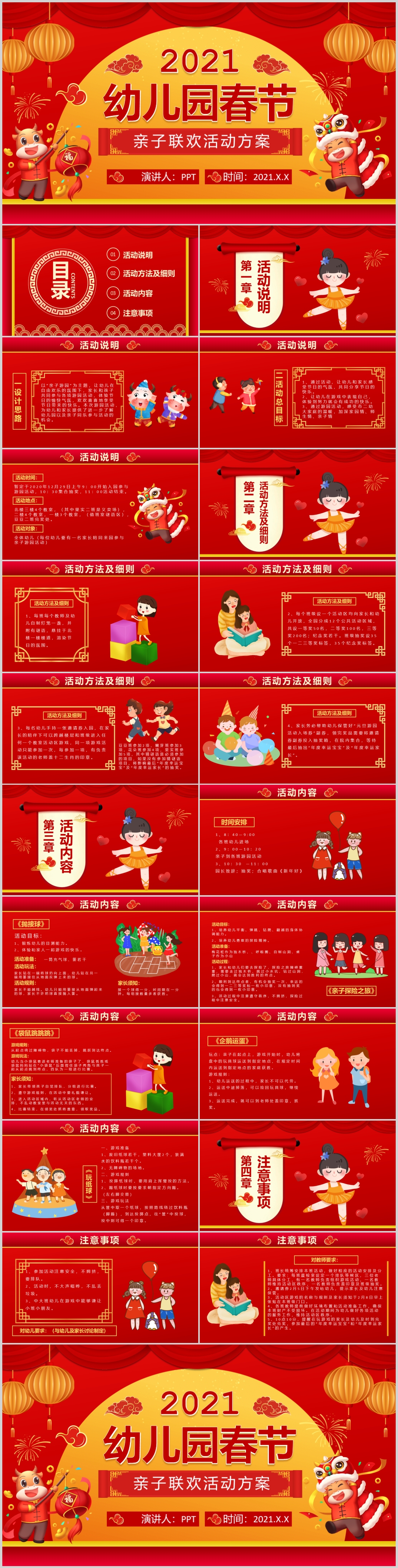 幼儿园2021元旦春节联欢晚会活动策划节日庆典班会主题PPT模板