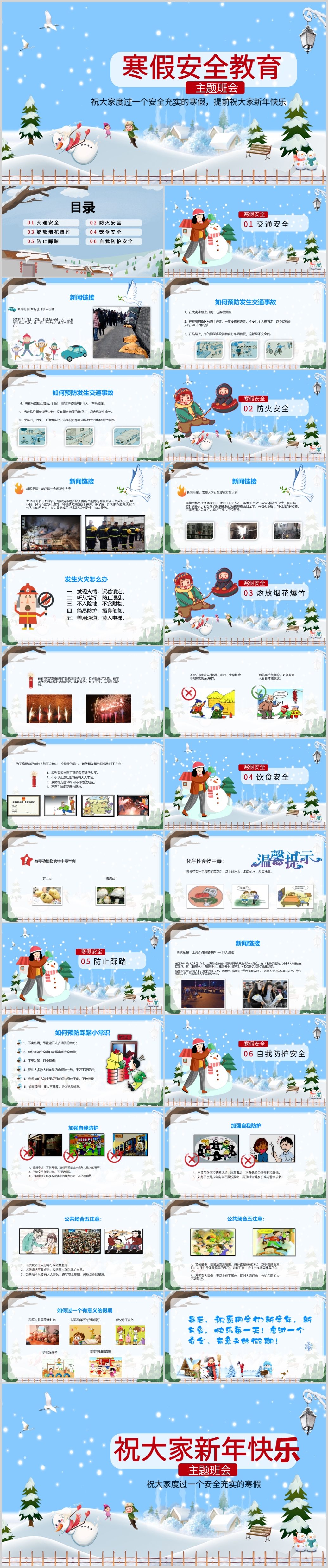 学校幼儿园中小学生寒假安全教育班会主题课件PPT模板