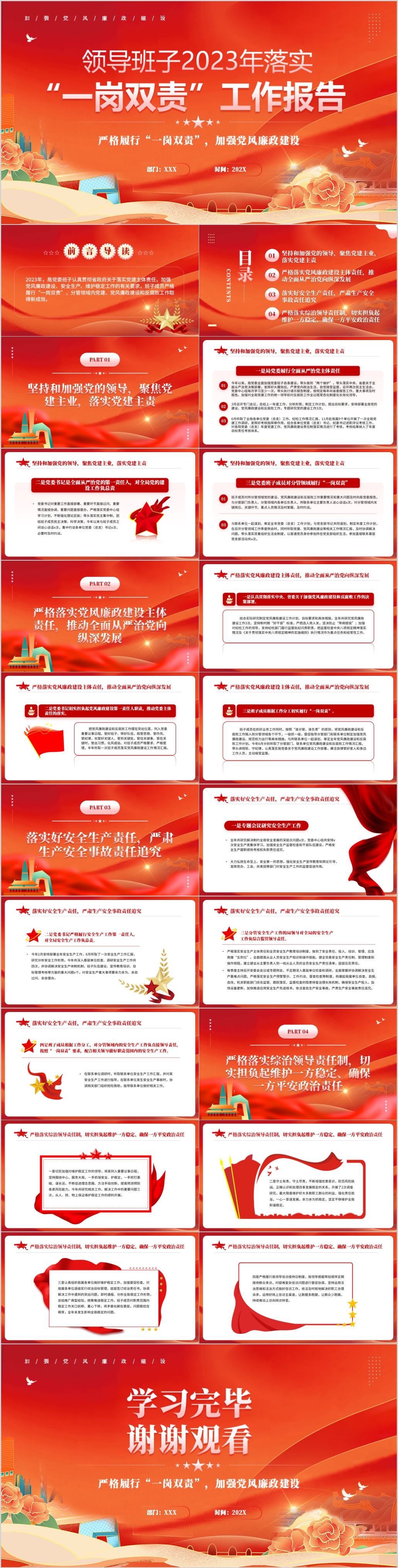 落实“一岗双责”工作报告党风廉政党课ppt模板(内含WORD演讲稿)