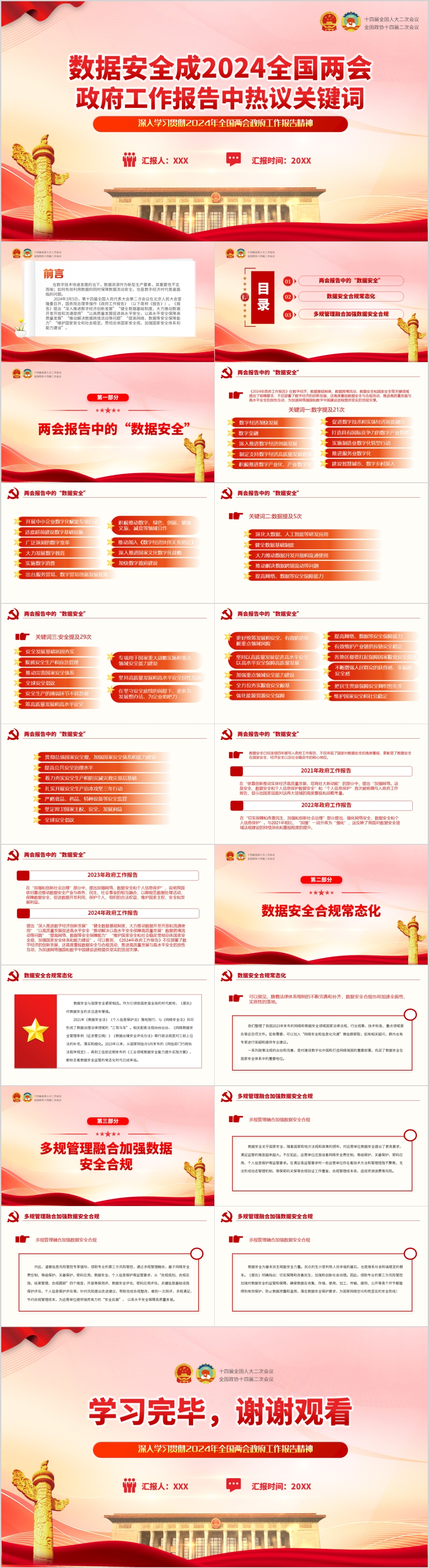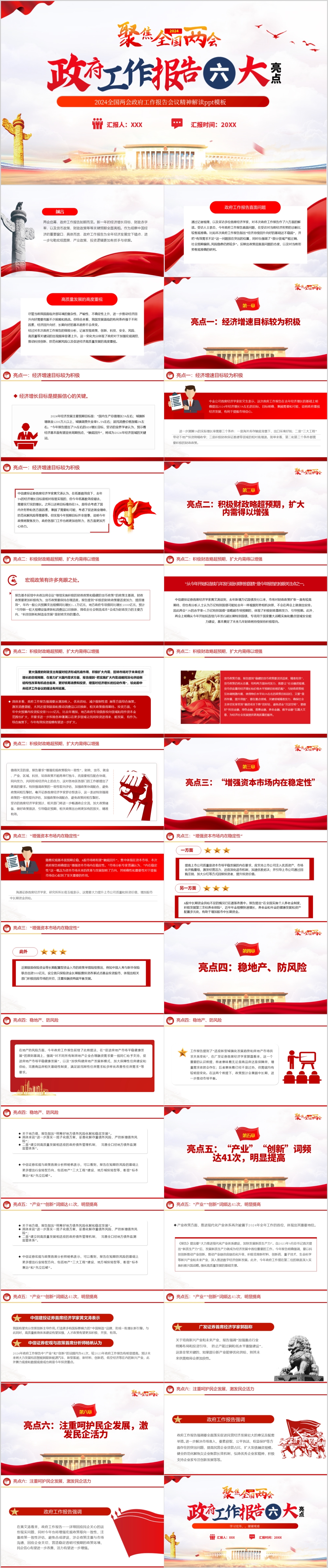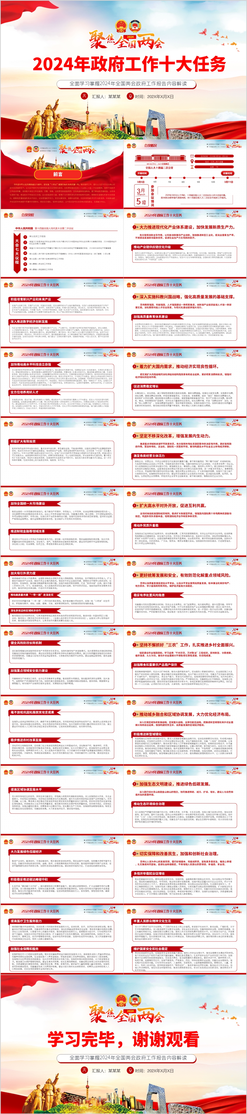 红色大气2024全国两会政府工作报告全文解读党课ppt模板(内含WORD演讲稿)