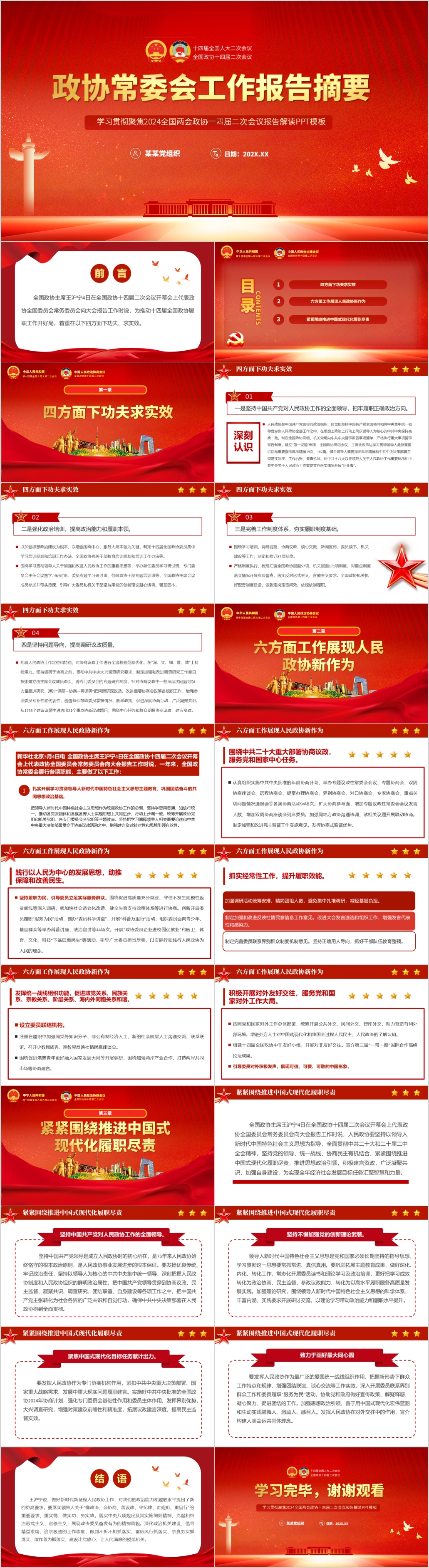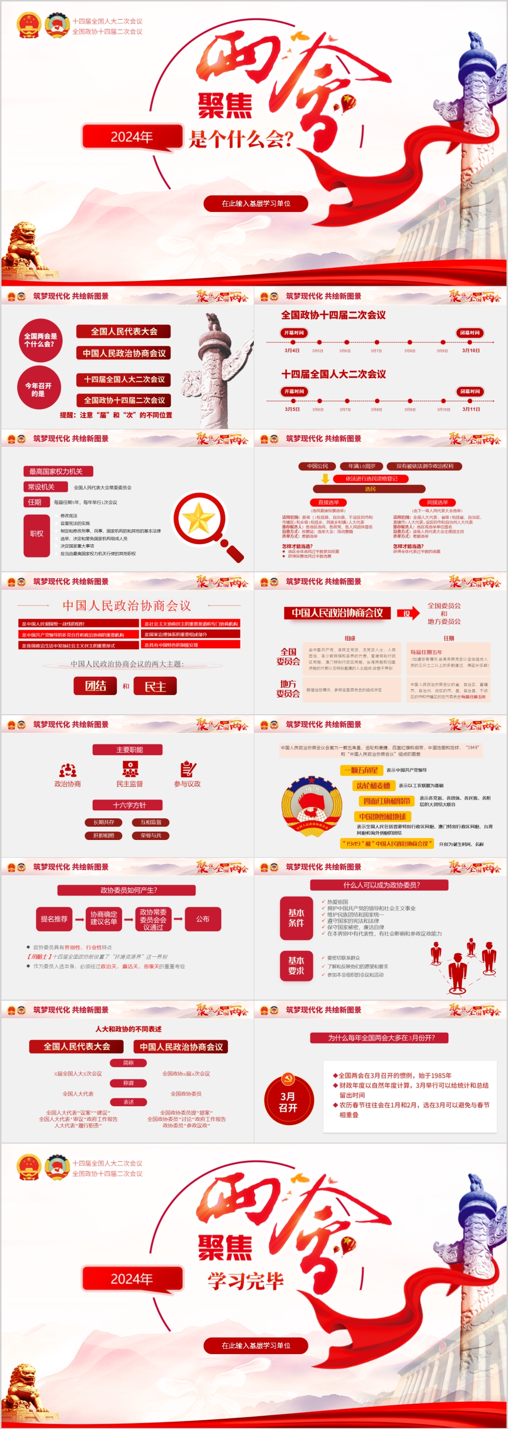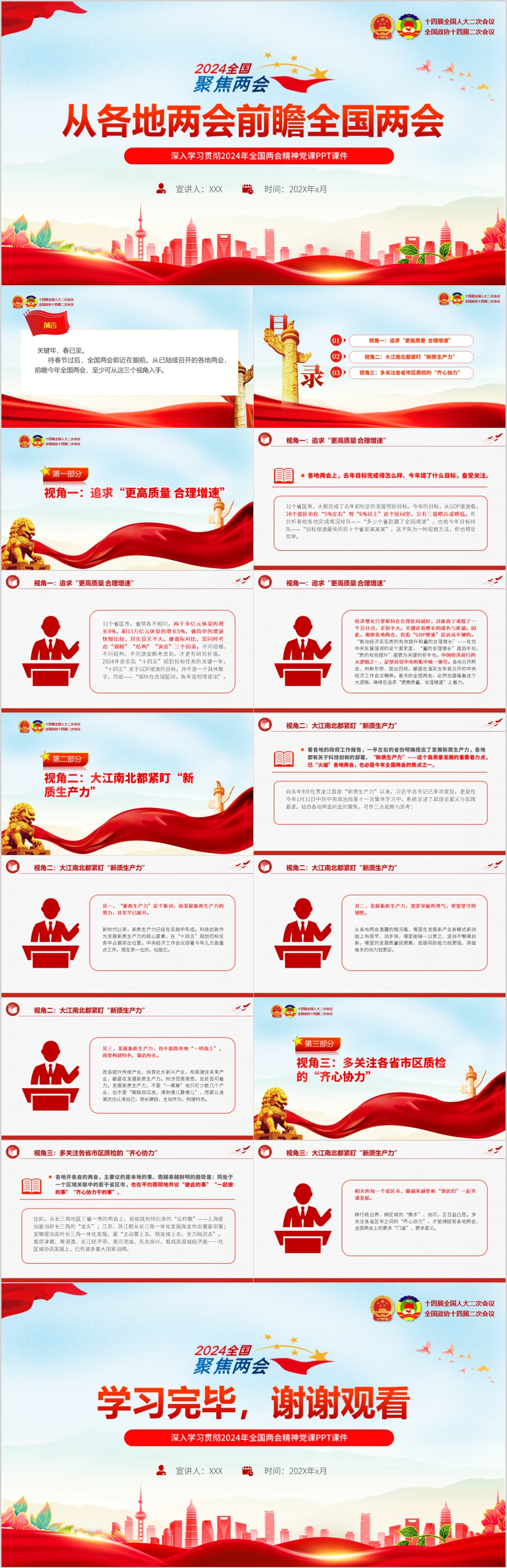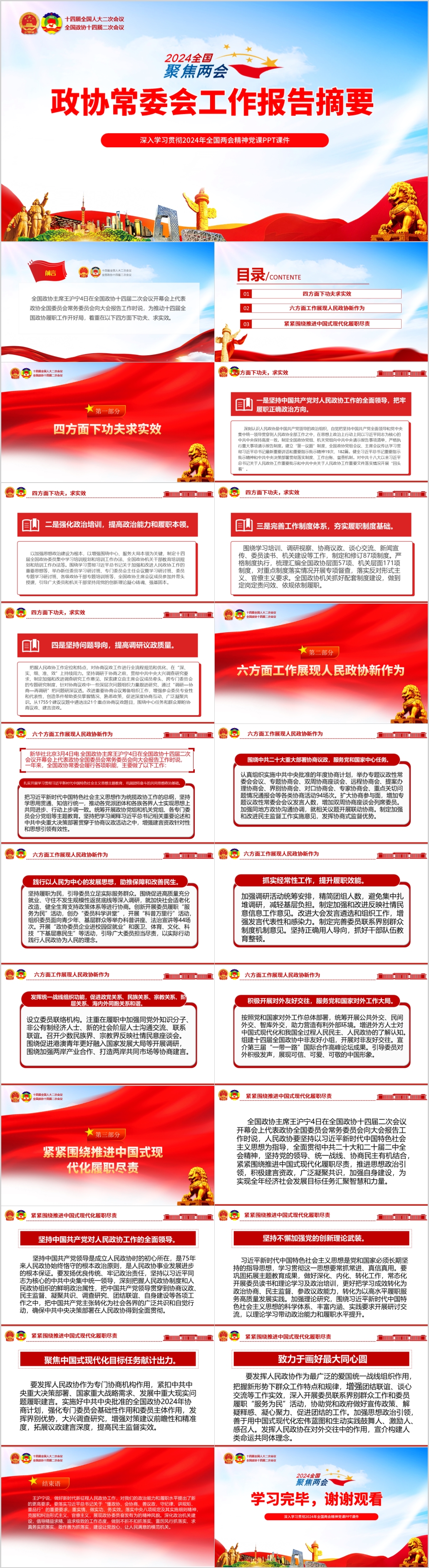 红色大气2024全国两会政府工作报告全文解读党课ppt模板(内含WORD演讲稿)