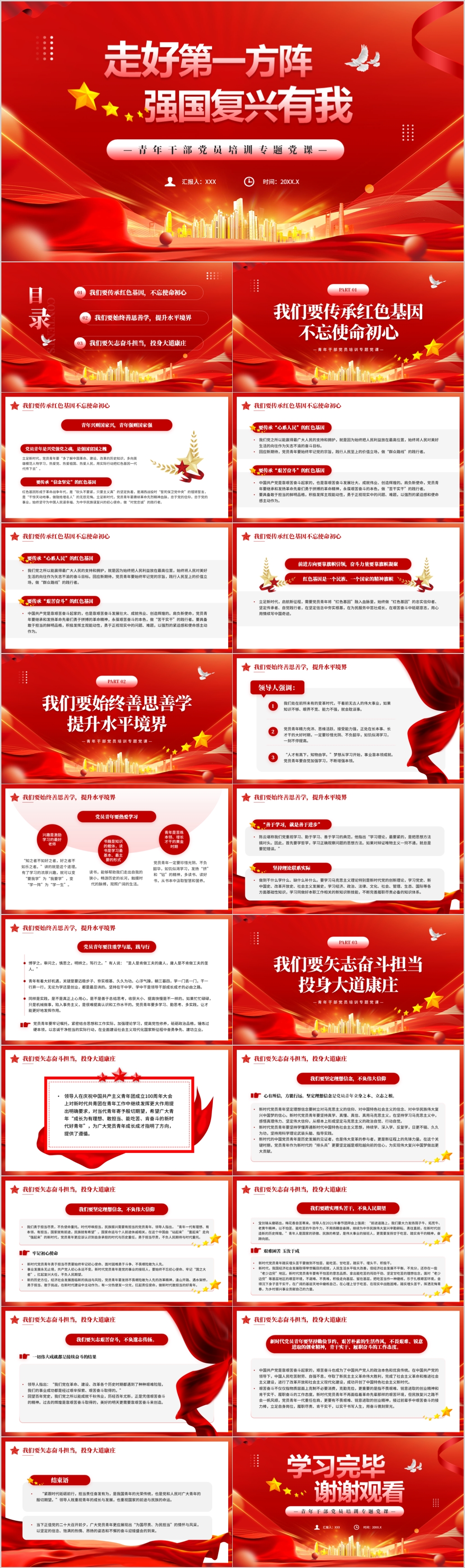 红色走好第一方阵强国复兴有我青年干部培训党课PPT模板