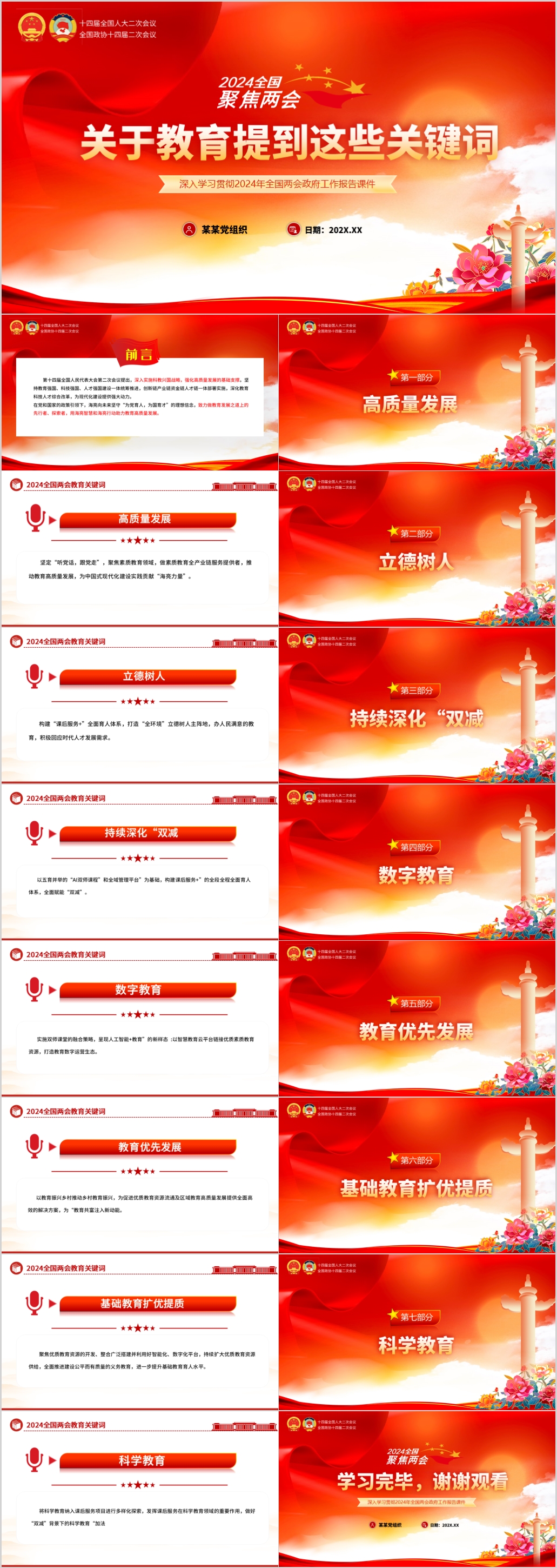 2024聚焦全国两会关于教育提到这些关键词解读党课PPT模板(内含WORD演讲稿)