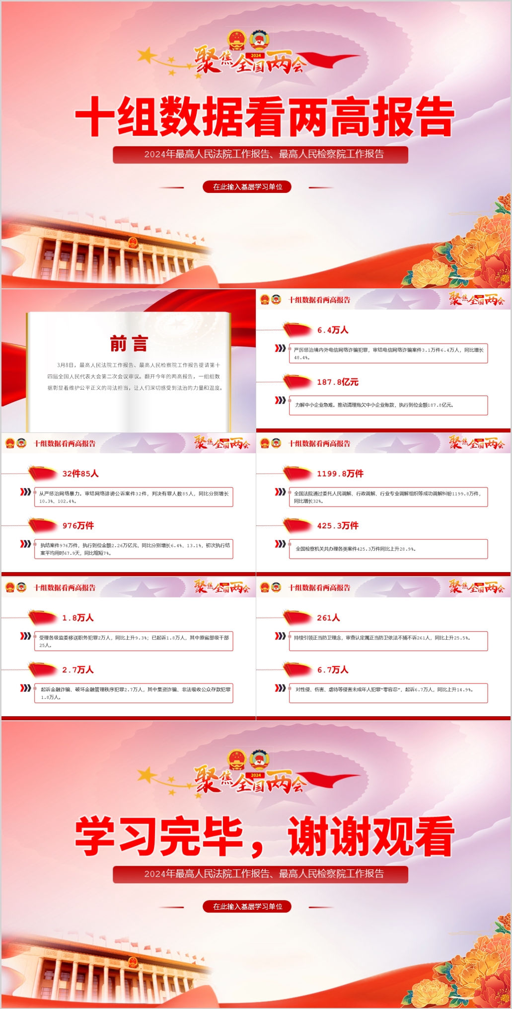 2024年两高报告十组数据两会精神学习党课ppt模板(内含WORD演讲稿)