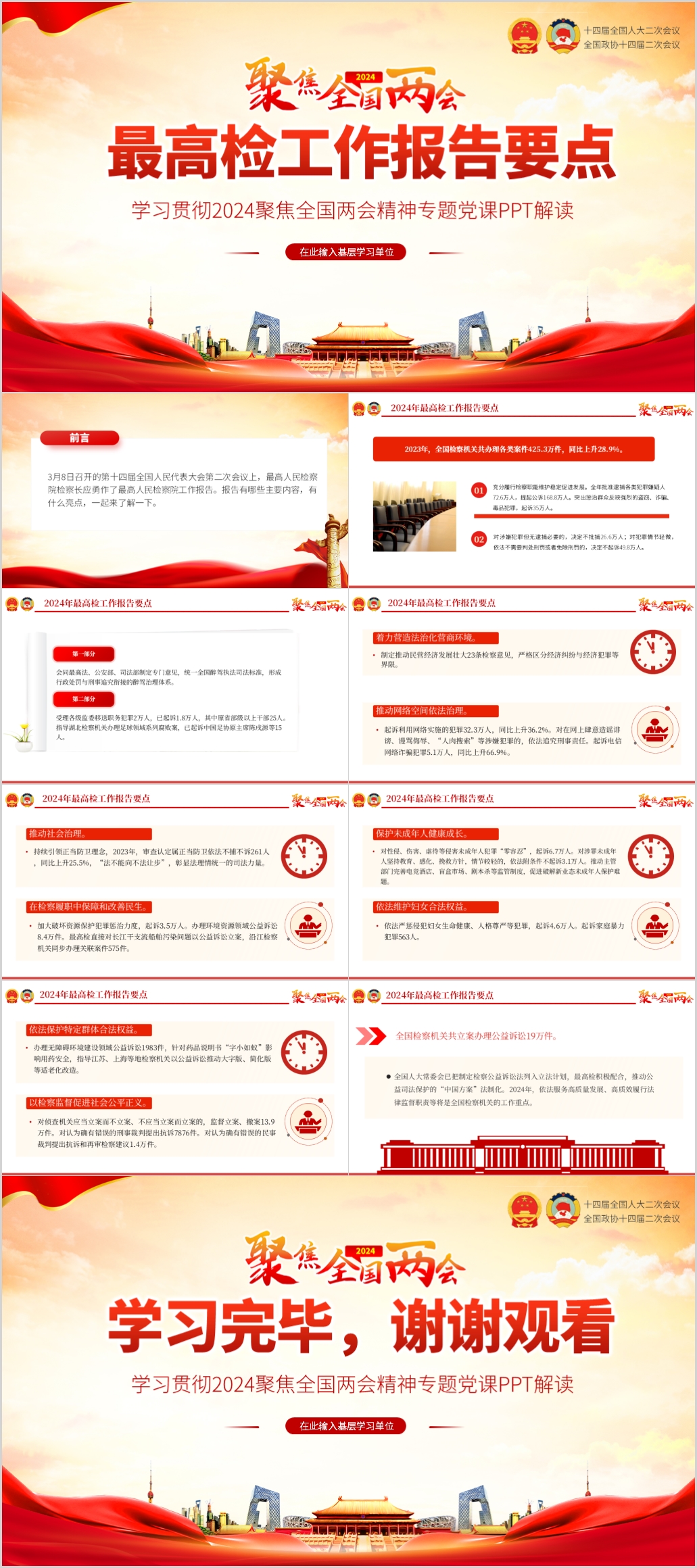 2024全国两会最高检工作报告要点内容解读党课PPT模板(内含WORD演讲稿)