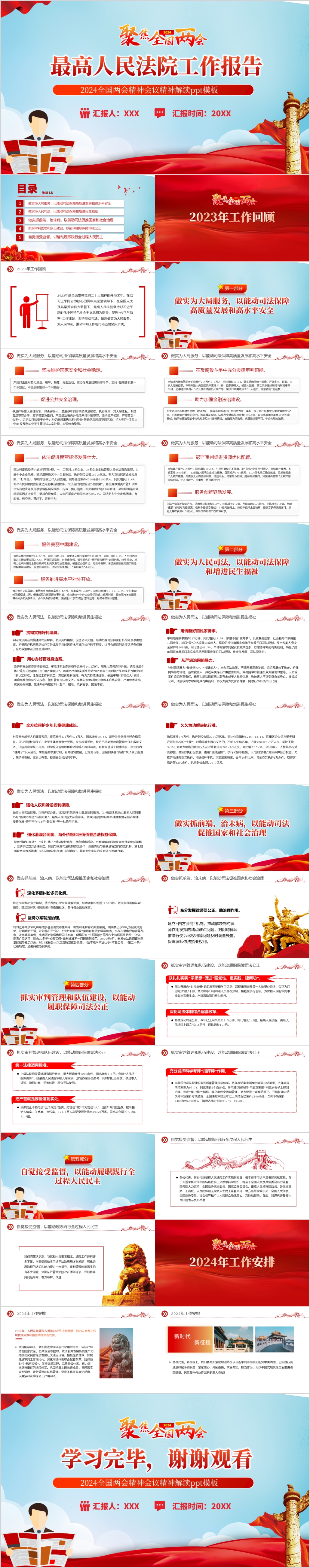 2024全国两会精神最高人民法院工作报告解读ppt模板(内含WORD演讲稿)